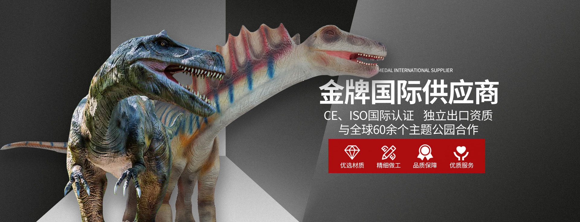 自A(ch)市大z艺术有限责d司简介自贡市大洋艺术有限责Q公司Qؓ中国恐龙展品制作基地Q成立于2009q_是专业从事恐龙化石骨架标本模型、仿真活体机器恐龙、仿真雕塑恐龙、玻璃钢恐龙、恐龙游乐场互动讑֤{展品的研制开发、出售和展览的高U技企业。ƈ在中国古生物专家的指gq行开发制作恐龙和仿真动物展品Q所制作的恐龙展品,被中国科学院鉴定为“优UU研作品”,被誉为“侏|纪”的再现者。公司占地面U?0000qxcI有一支专业研制恐龙标本模型和机器恐龙展品的职工队伍和一套具有先q性能的生产设备,q生产能力ؓ500万美元,其中U?0%的出口。我们研制和生的恐龙展品,以其造型逼真、表皮质感强、动作协调自如、组合情节科学、h(hun)格合理、售后服务佳而倍受国内外客L青睐和好评。十多年来,我们先后为美国、加拿大、阿根h(hun)、秘鲁、匈牙利、奥地利、荷兰、澳大利亚和我国的香港、台湑֜Z及北京自然博物馆、天z自然博物馆、上然博物馆、重庆自然博物馆、浙江自然博物馆、成都理工大学博物馆、太原中国煤炭博物馆、内蒙二q浩Ҏ(gu)龙博物馆、武汉中国地质大学博物馆、西峡恐龙蛋博物馆、朝阳鸟化石博物馆、河源恐龙博物馆、常州中华恐龙园、云南禄C界恐龙谷{地区的博物馆和恐龙主题公园以及人民公园制作和提供了相当数量的恐龙展品。同Ӟ先后为重庆恐龙公园、v南恐龙公园、晋江新世纪恐龙公园、番古生物博物馆、东莞古生物博物馆、西峡恐龙蛋博物馆设计和陈列布展?/div>